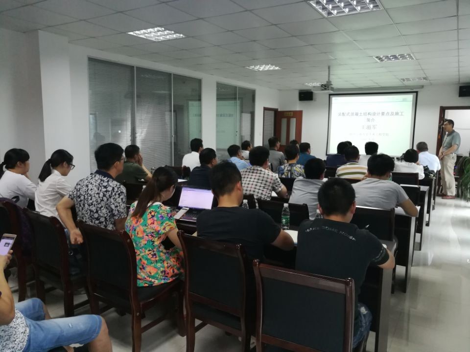 會(huì)議上王滋軍教授就“裝配式混凝土結(jié)構(gòu)設(shè)計(jì)要點(diǎn)及施工簡(jiǎn)介”作了報(bào)告,王滋軍教授首先闡明了裝配式建筑在我國(guó)發(fā)展的必要性,而后主要介紹了裝配式混凝土結(jié)構(gòu)的設(shè)計(jì)要點(diǎn)及施工過(guò)程。李寧、楊放高工就“裝配式混凝土結(jié)構(gòu)施工質(zhì)量檢驗(yàn)探討”作了報(bào)告,李寧高工指出裝配式結(jié)構(gòu)質(zhì)量檢驗(yàn)重點(diǎn),楊放高工主要介紹了我公司可應(yīng)用于裝配式建筑檢測(cè)的幾種特色檢測(cè)技術(shù)。劉杏杏工程師就“現(xiàn)代木結(jié)構(gòu)檢測(cè)與施工驗(yàn)收”作了報(bào)告,主要介紹了裝配式木結(jié)構(gòu)建筑體系和裝配式木結(jié)構(gòu)建筑檢測(cè)驗(yàn)收內(nèi)容。